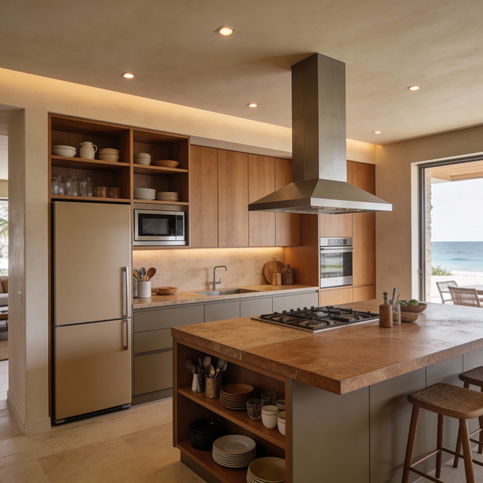 - Modern kitchen layout with premium fittings