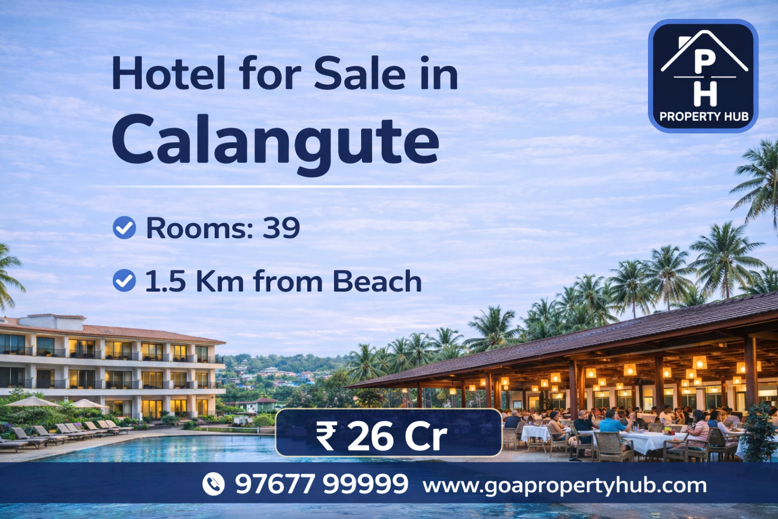 Presenting a premium opportunity to own a well-established hospitality property in the heart of Calangute, one of Goa’s most vibrant and high-demand tourist destinations.