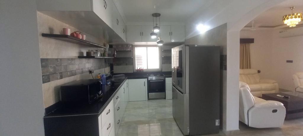 - Modern kitchen layout with premium fittings