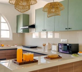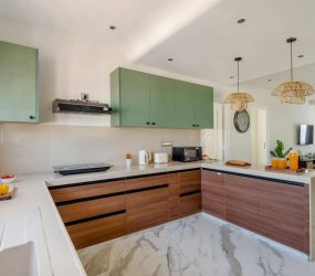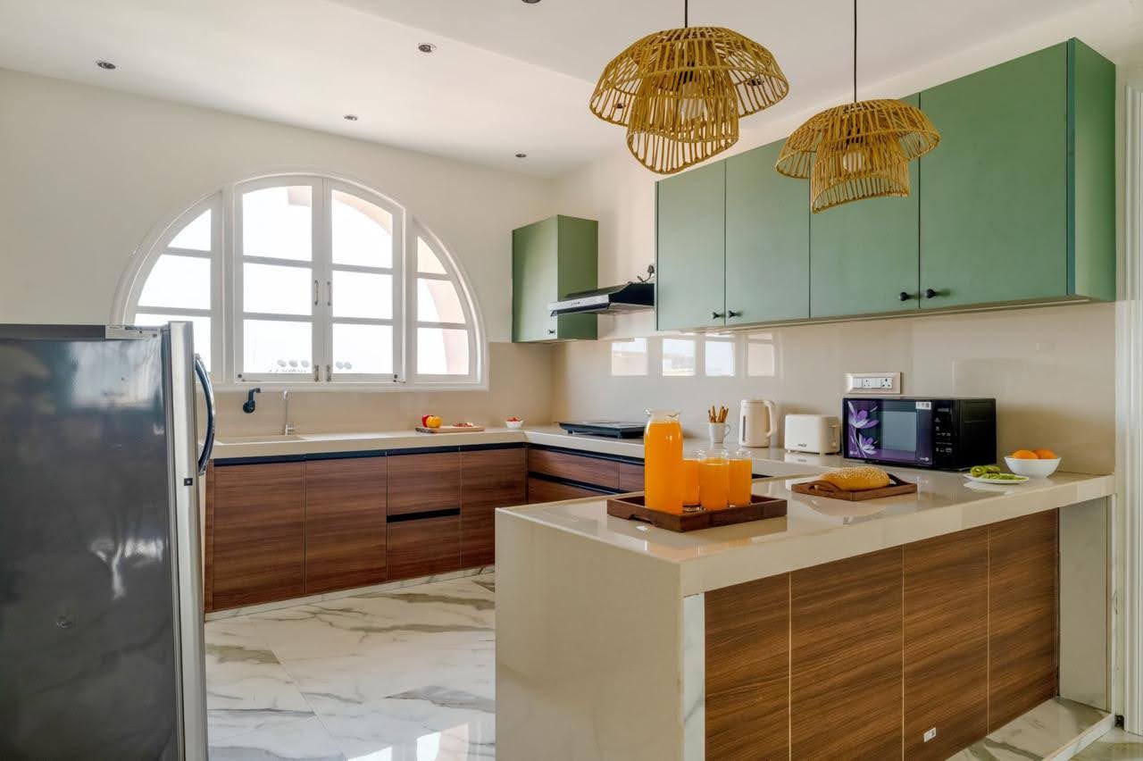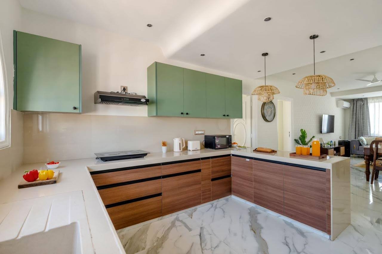 - Modern kitchen layout with premium fittings