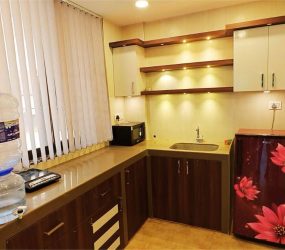 - Modern kitchen layout with premium fittings